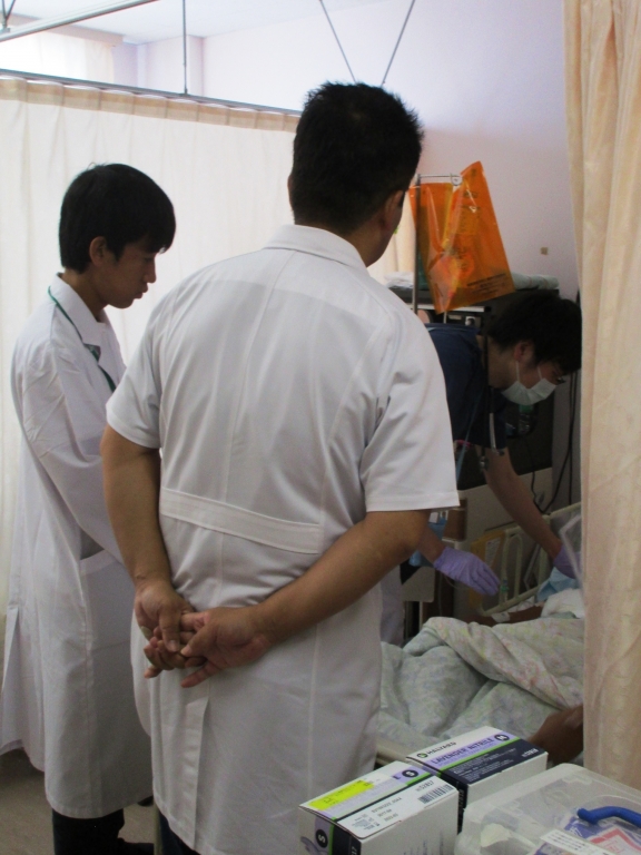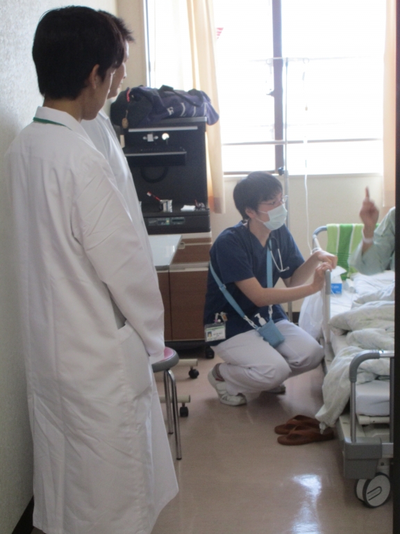 その後は、実際に診察の様子をベッドサイドで見学します。